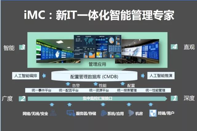 基于多年的積累和對企業IT領域的深入理解,新華三iMC智能管理平臺誕生之初,就以其人、資源、業務統一管理的理念重新定義了IT網絡管理概念,并不斷適應IT技術高速發展形勢,融合“云網端”,提供全域資源統一管理能力。不僅可以實現從應用到芯片級端到端的管理,同時以業務為中心構建服務模型,通過高效的配置關聯引擎,能夠實現綜合業務服務分析及智能定位故障根因,并打通一體化流程平臺,實現敏捷交付。