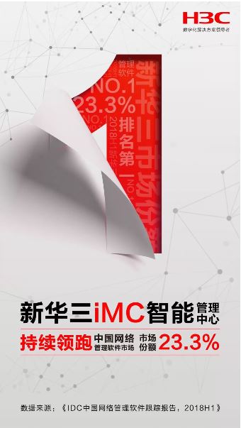 近日,權威市場研究機構IDC發布的《中國網絡管理軟件市場跟蹤報告,2018H1》顯示, 紫光旗下新華三集團的iMC智能管理中心在2018年上半年憑借23.3%的市場份額位居中國網絡管理軟件市場第一。同時,據IDC的數據統計,新華三從2017年到2018年上半年,已經連續占據中國網絡管理軟件市場份額首位,體現了新華三在網絡管理軟件領域的雄厚實力。